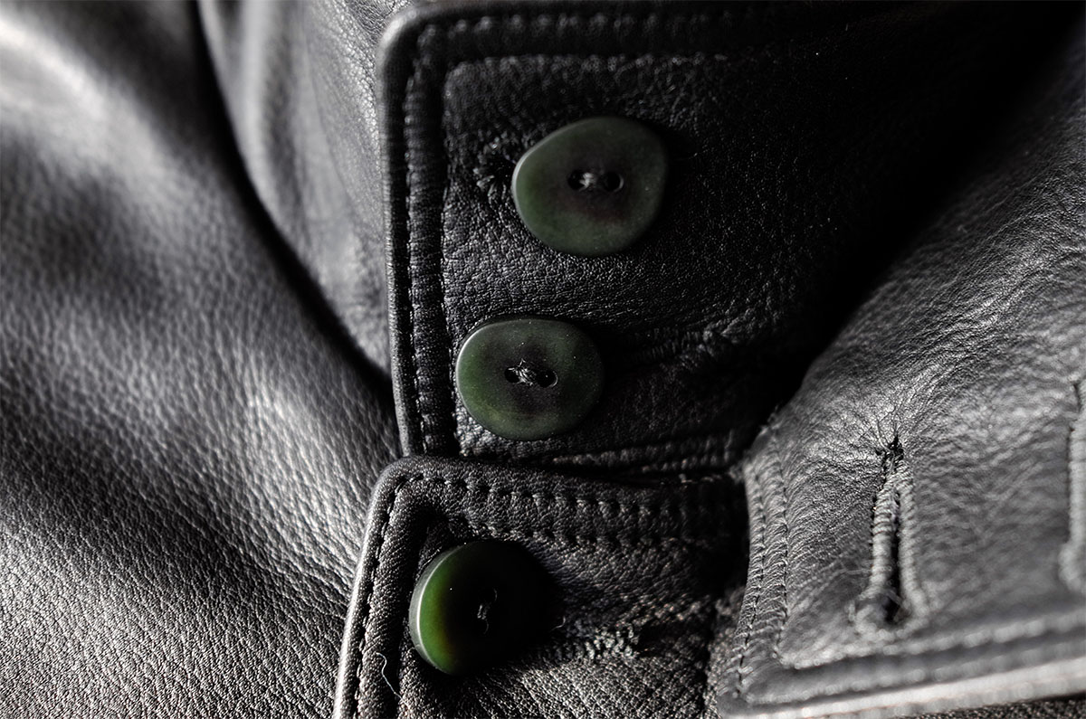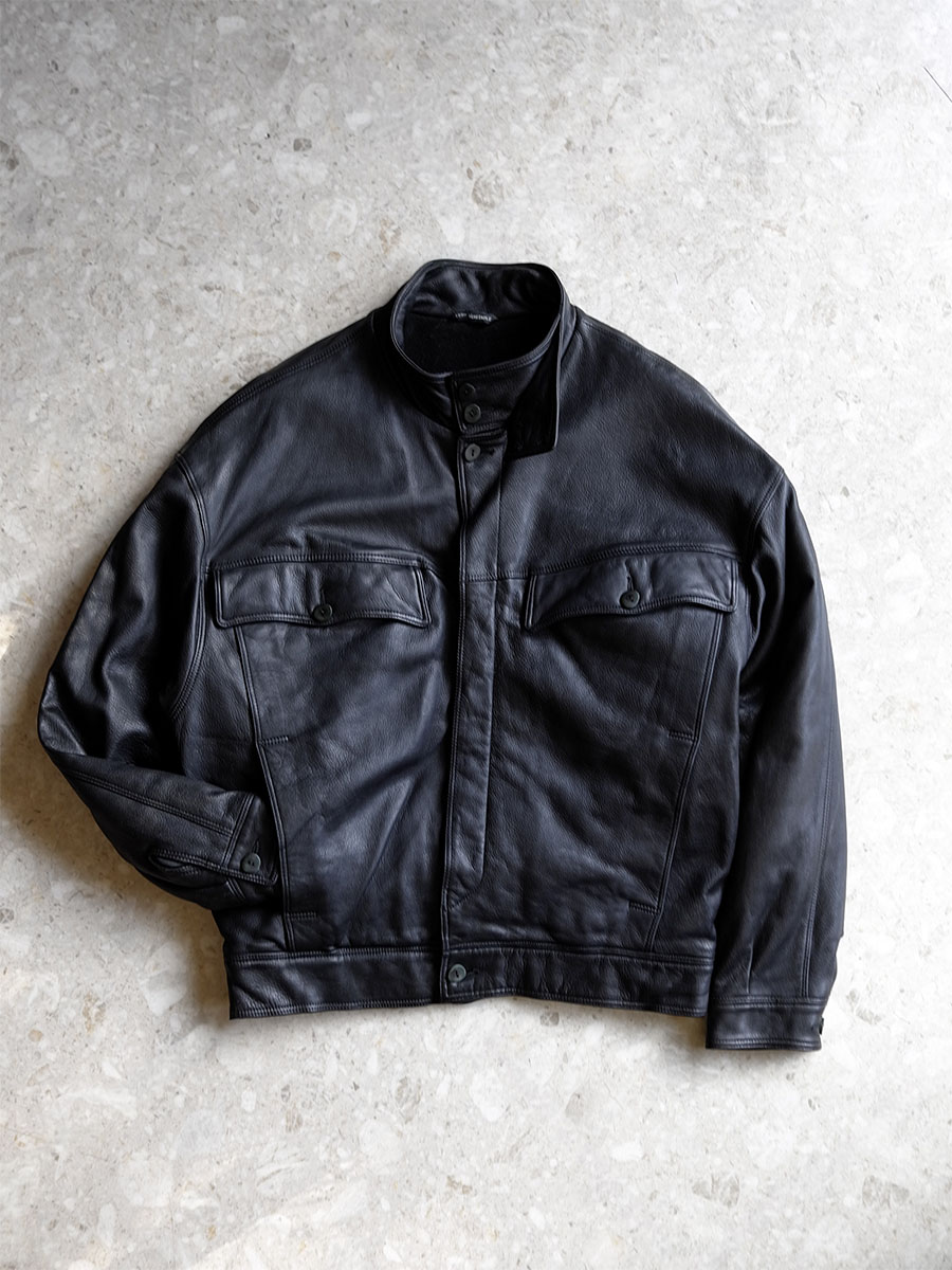 親愛なるセラファン、の中でも特に愛すべきはヴィンテージ年代における創始者エンリ・ジョルジュ・ザックスによるモード目線のデザインクリエイションライン。既存のセラファンがファッションブランドとしてではなくレザーウェアメーカーの側面が強かったために相反する世界観として存在したそれは、各社に提供していた最高峰のレザークオリティをザックス自らの手でモードデザインに昇華させたという上質な目線と贅沢な要素性を煮詰めに煮詰めたある種の究極的なクリエイションでありイコール変態的なクリエイション。御手本のようなボンバーシルエットと特徴的な意匠からは心地良いモードの迫力を,信じられないほどに美しいと同時に強度も兼ね備える最高峰の革質からはファッションの喜びを,ウールカシミアのライニングからは上質な目線の尊さを,そして落としたら絶っっっ対に替えが効かないであろう染色鹿の角ボタンからは変態的クリエイションの中毒性を。本当に凄まじいです、これ。