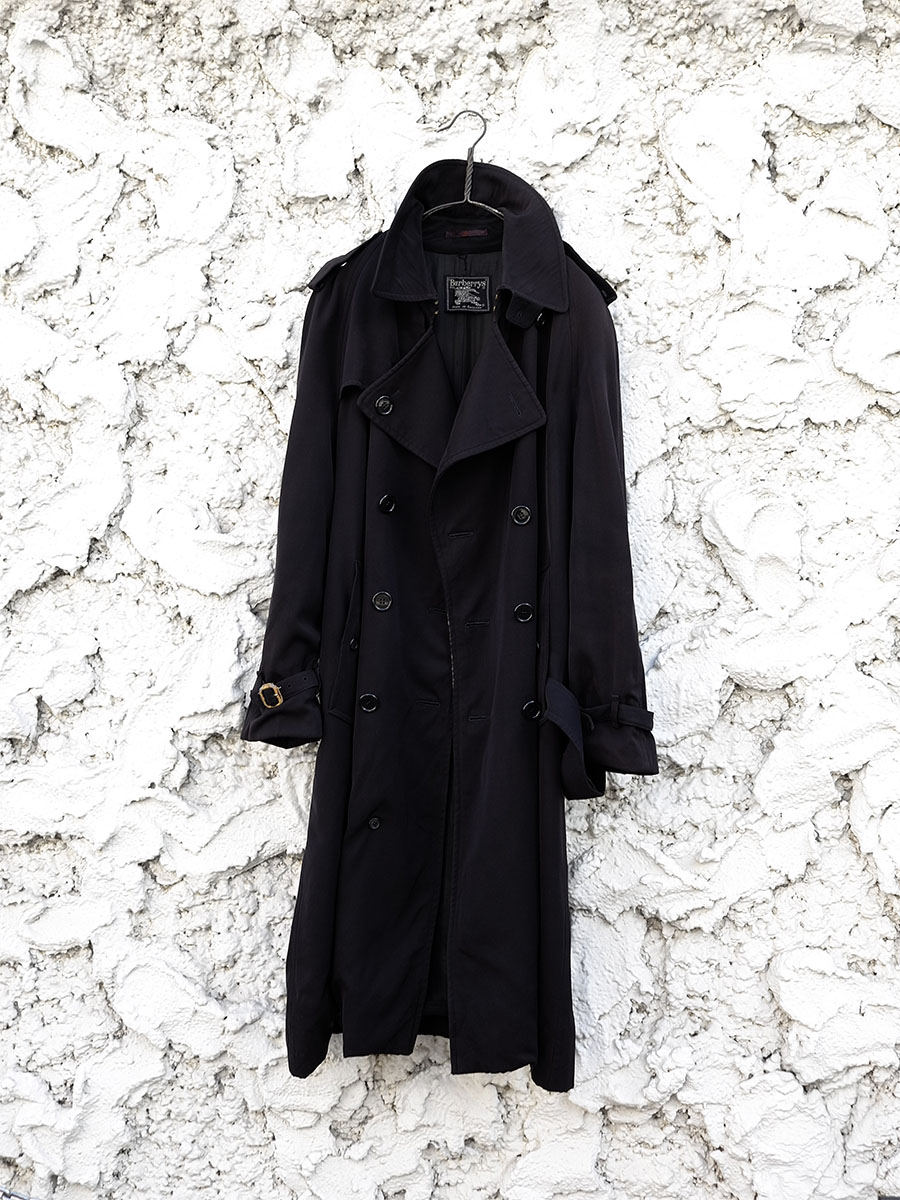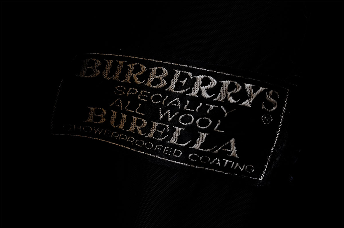 防水コーティングが施されたSPECIALITY ALL WOOL “BURELLA”個体のご提案はかなりに久方ぶりな気がします、BURELLAって確かアンブレラからでしたっけ?可愛いネーミングですよね。いわゆるウールギャバジン系統かつ屈強な素材感なのでこちらのようにしっかりとしたヴィンテージ風合いも合うなって思えました、独特な光沢もやはり粋。時代を経たからこその茄子紺のテクスチャーも幸運にも条件が揃えばやはり最高に格好良い、生き様がそのまま現れるのは人も服も一緒だなぁとまたVintage Burberryに教えられました。デザイナーズよりもデザイナーズなオリジントレンチコートです。
