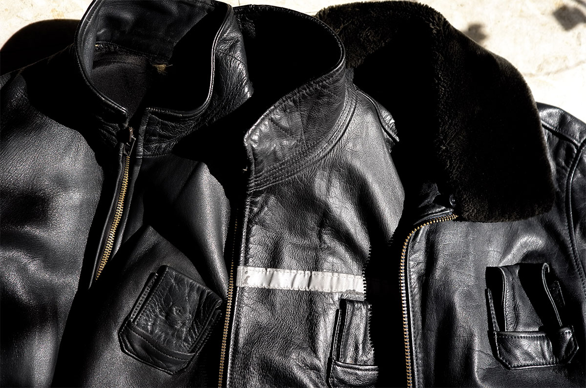 なのでこんな時代にも関わらず親愛なるコレクターのもとでフランス空軍のアヴィエイタージャケットと出逢えた時は本当に嬉しかった。しかも三着まとめて、しかも一着は着脱式襟完備で一着はこれまでに出逢ったことがない“とある個性”を秘めた非王道個体で。このフランス空軍のアヴィエイタージャケットを初めて目にした時の衝撃ったら今でも忘れていません、“何これクッソカッケーじゃん!” “しかも軍モノなの?超デザインカッケー!” “うわ着てもカッケー!”。今でも全く同じくに思います。こういった幾つかの服飾史に濃密な影響を与えたオリジンのおかげでヴィンテージがどんどんと好きになっていったんだよなぁ。