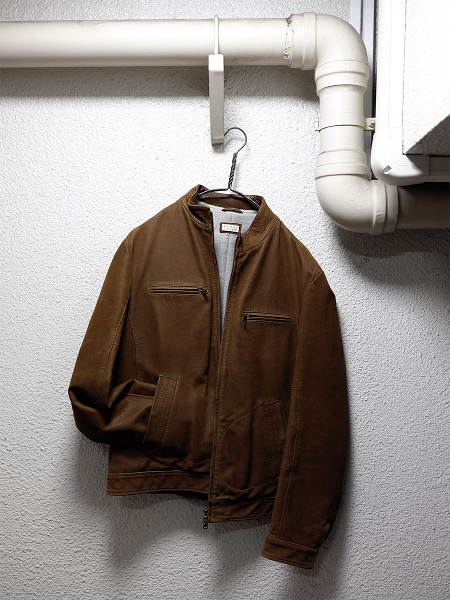 ニット専門メーカーから総合的ファッションブランドに推移したからこそ如実となった“あれ、クチネリさんってレザージャケットめちゃ好きなんじゃない?”というフェチズム的な傾向、これもまた私がブルネロ・クチネリという存在を心から愛する要素性の一つです。私は良い意味で思うんですよ、ブルネロ・クチネリってデザイナーズブランドではないなって、創造するデザインスタイルではなく過去から現代に繋がり続ける文化を継承した真のコンサヴァティヴだなって、だから時に逆に新鮮だし徹底して素敵だなって。真のコンサヴァティヴ哲学によるフェチズムのレザージャケットってやっぱり凄い、猛烈にド直球だから猛烈に無骨で、だからこそ異常なまでの色気が漂うんですもん。これこそガンガンに着倒して相棒に仕上げてほしいレザージャケットだなぁ。