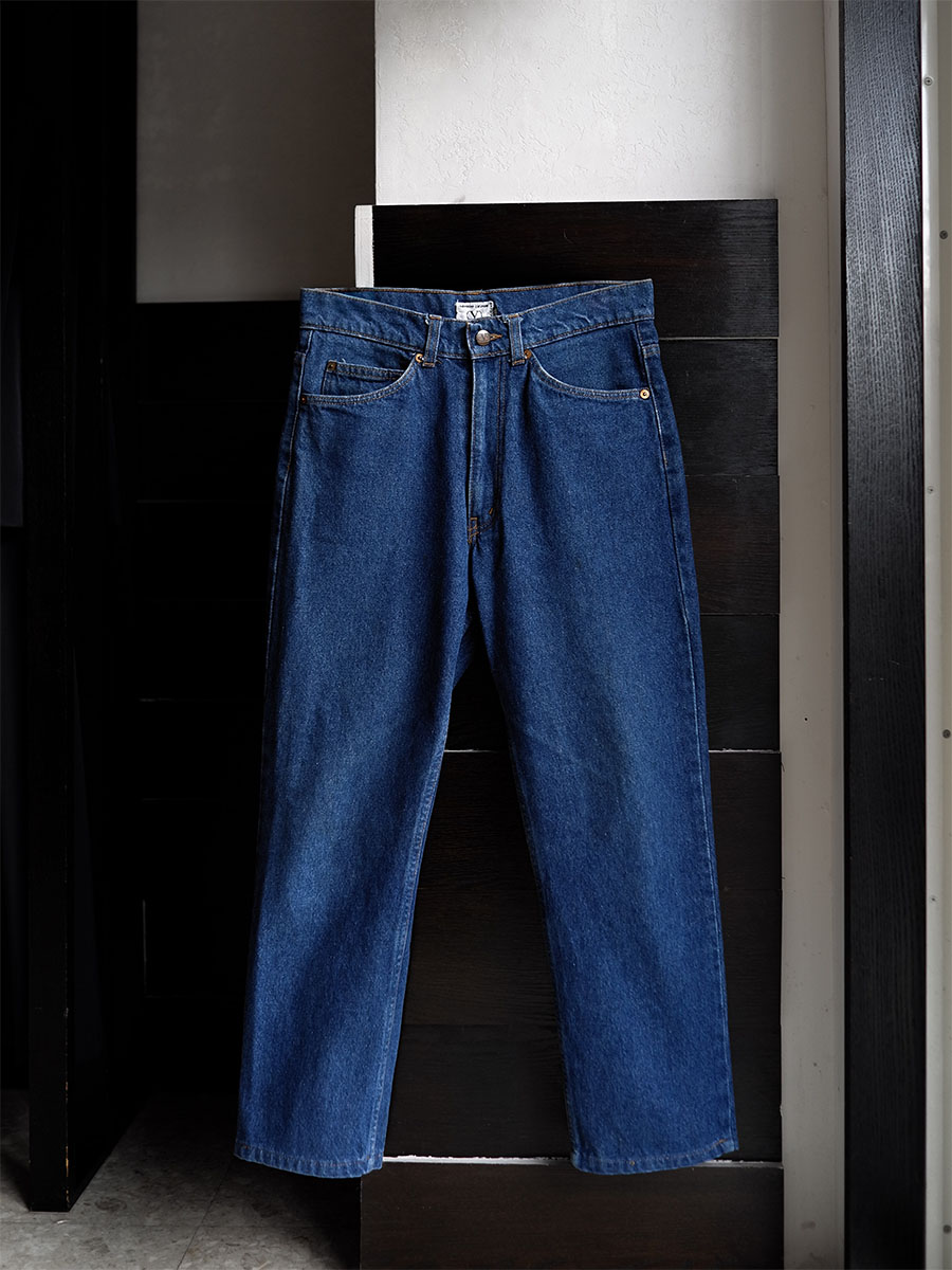 細くなく太くもなく、どちらかと言えばハイウエスト気味でクラッシックながら腰回りの設計がコンパクトなので足の付け根にしっかりと太さがあったとてシュッとしたレッグラインになる。誤解を恐れずに言えばデザイナーズジーンズにおけるリーバイス501的存在感なこちらは、一見すると超絶普通ながら普通ではない“ファッションデザイナーによる設計”という意義が隅々にまで注がれています。なんせ32インチ表記にも関わらず実寸がウエスト29.9インチなのですから。デニムブルーも濃いったらないしレングスバランスも良くて満遍なく軽いエイジングがあるので裾の仕上げも最近ではないことが分かりますから、おそらくというか間違いなくこれはいわゆる“相当に良い個体”でしょう。